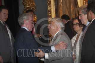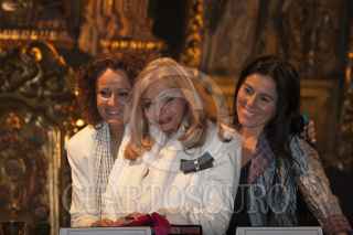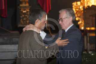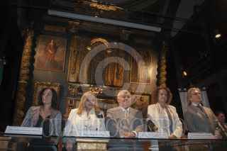 MÉXICO, D.F., 17ABRIL2013.- María José Paz y Silvia Lemus de Fuentes, viudas de los escritores Octavio Paz y Carlos Fuentes, en la ceremonia donde la Universidad del Claustro de Sor Juana reinauguró el auditorio “Divino Narciso” como parte de la conmemoración del 318 aniversario del fallecimiento de la poetisa mexicana. FOTO: JUAN PABLO ZAMORA /CUARTOSCURO.COM