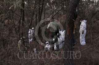 EL ARENAL, JALISCO 17ABRIL2013.-Esta tarde a un costado de una brecha que conduce hacia el poblado del Salado en el municipio del Arenal, cerca del Balneario las Tortugas, se descubrió el hallazgo de dos fosas clandestinas en donde se encontraban por lo menos tres cadáveres enterrados, hasta el lugar acudió personal de la Agencia Estatal de Investigaciones de Nayarit quienes realizaron el operativo en la localidad, también estuvo presente personal de la Fiscalía General del Estado, así como del Instituto Jalisciense de Ciencias Forenses y demás autoridades, para realizar las indagatorias al caso así como el levantamiento de los cuerpos. FOTO: FERNANDO CARRANZA GARCÍA /CUARTOSCURO.COM