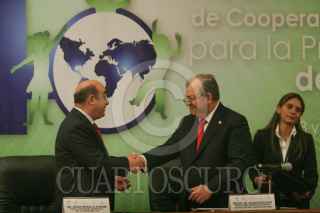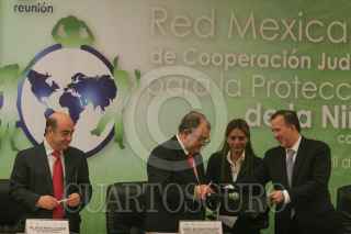 MÉXICO, D.F., 18ABRIL2013.-El presidente del Tribunal Superior de Justicia del Distrito Federal (TSJDF), Edgar Elías Azar, el titular de la Secretaría de Relaciones Exteriores (SRE), José Antonio Meade Kuribreña, y el titular de la Procuraduría General de la República (PGR), Jesús Murillo Karam, asistieron a la inauguración de "la Cuarta Reunión de la Red Mexicana de Cooperación Judicial para la Protección de la Niñez" y la firma del "Convenio de Colaboración en Materia de Adopción y Restitución Internacional de Menores", en las instalaciones del Tribunal Superior de Justicia del Distrito Federal (TSJDF). FOTO: JUAN PABLO ZAMORA /CUARTOSCURO.COM