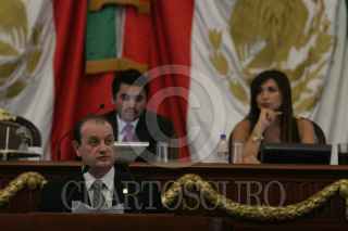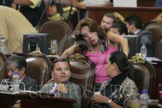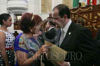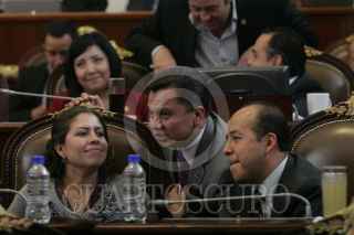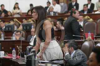 MÉXICO, D.F., 18ABRIL2013.-Alejandra Barrios, líder de vendedores ambulantes y Diputada local por el PRI, platica con el titular de la Procuraduría General de Justicia del Distrito Federal (PGJDF), Rodolfo Ríos Garza, al final de su compareciencia ante el pleno de la Asamblea Legislativa del Distrito Federal (ALDF). FOTO: JUAN PABLO ZAMORA /CUARTOSCURO.COM