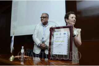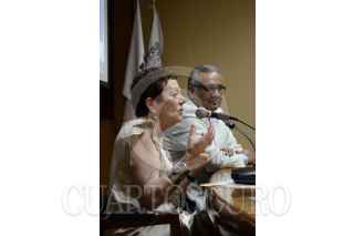 PACHUCA, HIDALGO, 19ABRIL2013.- En una conferencia magistral la fotógrafa Graciela Iturbide mostró sus imágenes representativas de más de 30 años de trabajo, estuvó acompañada del director del Sistema Nacional de Fototecas, Juan Carlos Valdés Marín, esto en el marco del Festival Internacional de la Imagen -FINI- organizado por la Universidad Autónoma del Estado de Hidalgo. El festival fue inaugurado ayer y continuará con actividades hasta el jueves 25 de abril. FOTO: JOYCE GARCÍA /CUARTOSCURO.COM