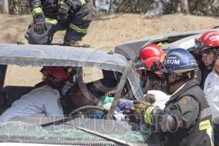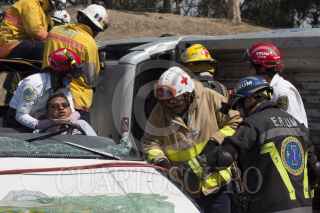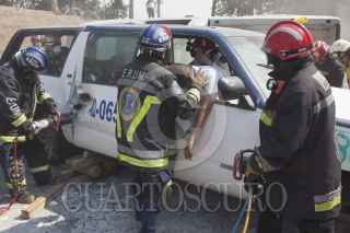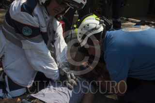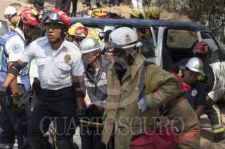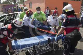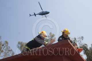 MÉXICO, D.F., 20ABRIL2013.- Rescatistas de varias corporaciones participaron en un mega simulacro en el marco del Encuentro Regional de Gestión de Emergencias Mayores que se celerbó en el Instituto Técnico de Formación Policial. El objetivo de este tipo de encuentro es la coordinación entre estos cuerpos de rescate de los diferentes niveles locales y federal para atender un emergencia de proporciones mayores, además de intercambiar experiencias y conocimientos. FOTO: MOISÉS PABLO /CUARTOSCURO.COM