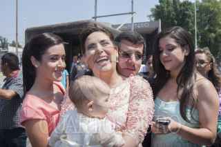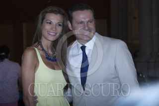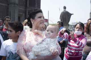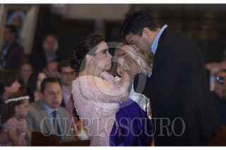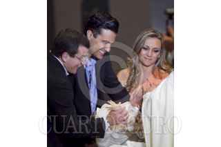 MÉXICO, D.F.,20ABRIL2013.- El conductor, Alan Tacher y su novia, Cristina Bernal, acudieron a la misa de bautizo de la niña Angelica Maciel Vale, hija de la actríz, Angelica Vale que se llevó a cabo la mañana de hoy en el Templo de las Capuchinas ubicado en la Basilica de Guadalupe. FOTO: FRANCISCO RODRÍGUEZ /CUARTOSCURO.COM