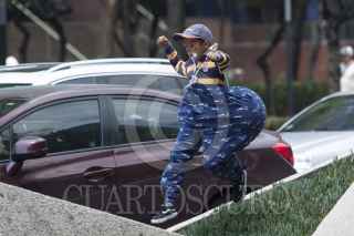 MÉXICO, D.F., 20ABRIL2013.- Un niño vestido de payasito aguarda en el camellón central del Paseo de la Reforma para pedir una moneda a los automovilistas. FOTO: RODOLFO ANGULO /CUARTOSCURO.COM