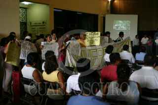 VILLAHERMOSA, TABASCO, 16AGOSTO2005.- Habitantes de la colonia El Retiro, se plantaron en el zocalo del Palacio de Gobierno, ya que esperan ser escuchados al ser afectados desde años atras por Pemex. FOTO: Marco Polo Guzmán/CUARTOSCURO.COM