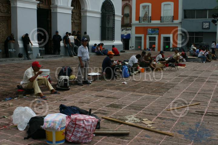 VILLAHERMOSA, TABASCO, 16AGOSTO2005.- Habitantes de la colonia El Retiro, se plantaron en el zocalo del Palacio de Gobierno, ya que esperan ser escuchados al ser afectados desde años atras por Pemex. FOTO: Marco Polo Guzmán/CUARTOSCURO.COM