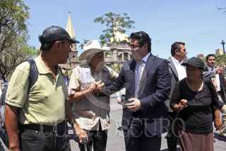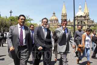 GUADALAJARA, JALISCO., 22ABRIL2013.- Hoy al medio día el Gobernador del Estado, Jorge Aristóteles Sandoval, se dirigió pie tierra desde Palacio de Gobierno la Secretaria del Trabajo, e iba acompañado por el Presidente del Congreso del Estado, Miguel Castro y el Presidente del Ayuntamiento de Guadalajara, Ramiro Hernández. FOTO: FERNANDO CARRANZA /CUARTOSCURO.COM