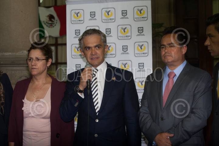 MÉXICO, D.F, 22ABRIL2013.- Miguel Ángel Mancera, jefe de gobierno de la ciudad de México, dió su posicionamiento ante la prensa de la reunión a puerta cerrada por mas de tres horas con Rosario Robles Berlanaga, secretaria de Desarrollo Social del Gobierno Federal, en donde se analizó la aplicación de la Cruzada Contra el Hambre. Acompañado de los jefes delegacionales de: Gustavo A, Madero, Nora Rojas, Iztapalapa, Jesús Valencia, Alvaro Obregón, Leonel Luna, y Tlalpan, Maricela Contreras; Mancera aclaró que no se aplicará la Cruzada hasta que no estén instaladas todas las mesas y sepan cómo se va a aplicar el programa, sin embargo, no informó cuando se realizará la segunda reunión. FOTO: JUAN PABLO ZAMORA /CUARTOSCURO.COM