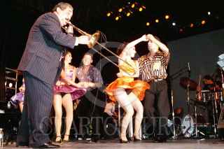 Decenas de parejas concursaron en el salsodromo con la intencion de ganar un viaje a Can Cun. Willie Colon se presento en este escenario instalado en el zocalo capitalino.