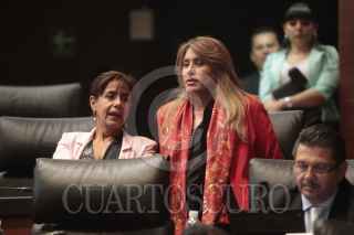 MÉXICO, D.F., 23ABRIL2013.- Luisa María Calderón y Maki Esther Ortiz Domínguez, Senadoras del partido Acción Nacional (PAN), durante la Sesión Ordinaria del Senado de la República. FOTO: CUARTOSCURO.COM