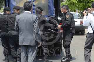 MÈXICO D.F., 23 ABRIL 2013 Personal de la Secretaria de Seguridad Publica, del grupo Zorros, laboraron en calle 13 entre la 12 y la 14 de la colonia Prohogar con un artefacto al parecer explosivo, de fabricación casera. Por este motivo fue cerrada esta calle a la circulación peatonal y vehicular. Dicho artefacto fue trasladado a base piraña en Tlahuac en donde será examinado. FOTO: LUIS CARBAYO /CUARTOSCURO.COM