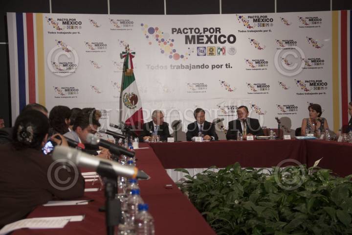 MÉXICO, D.F., 24ABRIL2013.- Jesús Zambrano, líder nacional del PRI, y Aurelio Nuño Mayer, Jefe de la Oficina de la Presidencia, al finalizar el encuentro con el consejo rector del Pacto por México con organizaciones civiles de mujeres que promueven los derechos de género. FOTO: MOISÉS PABLO /CUARTOSCURO.COM