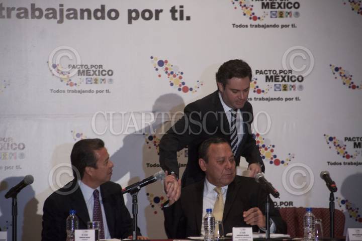 MÉXICO, D.F., 24ABRIL2013.- Jesús Zambrano, líder nacional del PRI, y Aurelio Nuño Mayer, Jefe de la Oficina de la Presidencia, al finalizar el encuentro con el consejo rector del Pacto por México con organizaciones civiles de mujeres que promueven los derechos de género. FOTO: MOISÉS PABLO /CUARTOSCURO.COM