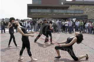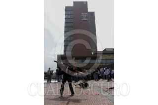 MÉXICO, D.F., 25ABRIL2013.- Estudiantes del CCH realizaron una danza en protesta por la toma de Rectoría de la UNAM que mantienen jóvenes encapuchados desde la semana pasada. FOTO: ISAAC ESQUIVEL /CUARTOSCURO.COM