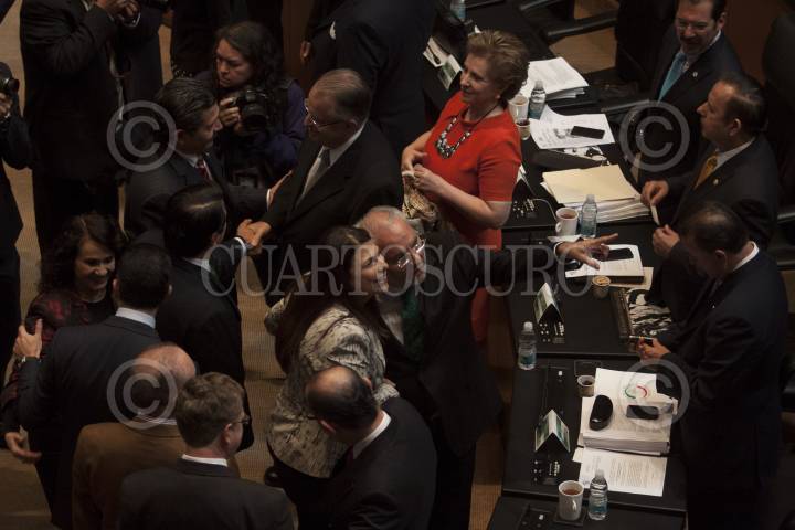 MÉXICO, D.F., 25ABRIL2013.- Conversación entre el Ernesto Cordero y el perredista Miguel Barbosa, en la sesión de la Cámara de Senadores. FOTO: MOISÉS PABLO /CUARTOSCURO.COM
