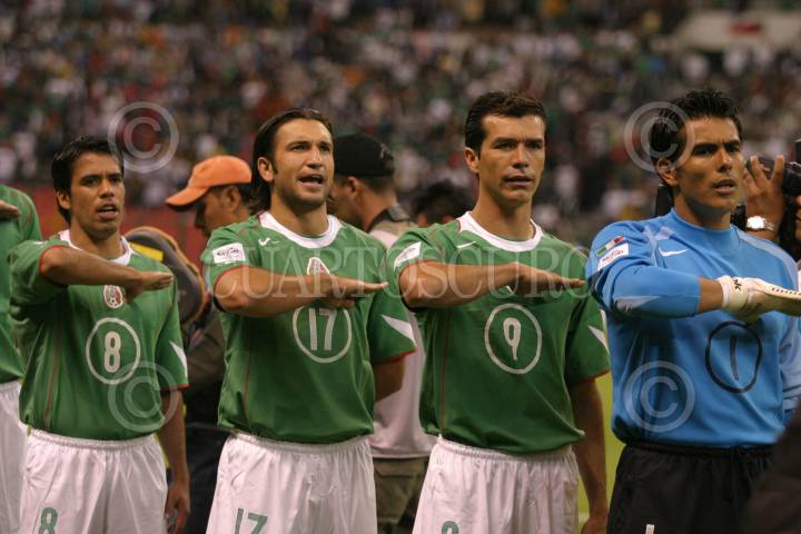 MEXICO D.F.17AGOSTO2005.-Los jugadores de la selección mexicana de futbol disputan un balón con los jugadores de la selección de Costa Rica en el partido de eliminatoria de la CONCACAF rumbo al mundial de Alemania 2006. FOTO: Moisés Pablo/CUARTOSCURO.COM