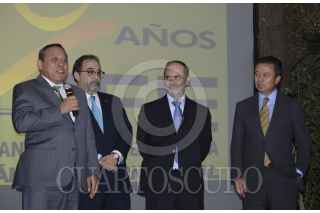 MÉXICO, D.F., 25ABRIL2013.- Leonardo Valdés, presidente del IFE, Jesús Zambrano, dirigente nacional del PRD, Luis Castro, dirigente nacional del Partido Nueva Alianza, Gustavo Madero, dirigente nacional del PAN, y César Camacho Quiroz, presidente del PRI, durante el foro 20 Años de Actividad Internacional del Instituto Federal Electoral. FOTO: CUARTOSCURO.COM