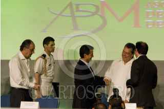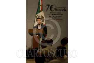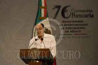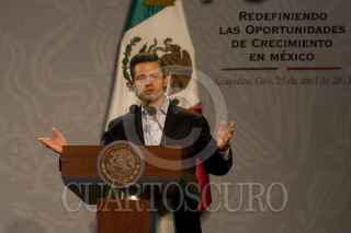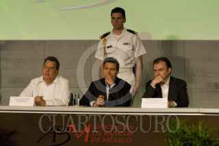 ACAPULCO, GUERRERO, 25ABRIL2013.- Jaime Ruíz Sacristán, presidente de la ABM, Ángel Aguirre, gobernador de Guerrero, Enrique Peña Nieto, Presidente de México, y Luis Videgaray, secretario de Hacienda y Crédito Público, durante la inauguración de la 76 Convención Bancaria organizada por la Asociación de Bancos de México. FOTO: IVÁN MENDEZ /CUARTOSCURO.COM