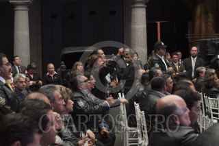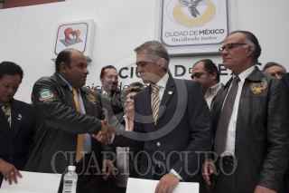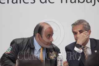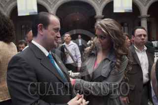 MÉXICO, D.F., 26ABRIL2013.- Rodolfo Ríos, Procurador General de Justicia del DF, conversa con Nora Arias, jefe delegacional de la Gustavo A. Madero, al finalizar el foro de revisión de condiciones generales de trabajo del STUGDF, en el Museo de la Ciudad de México. FOTO: MOISÉS PABLO / CUARTOSCURTO.COM