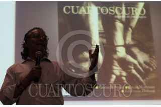 MÉXICO, D.F., 26ABRIL2013.- Pedro Valtierra director de Cuartoscuro durante su participación con estudiantes en la Escuela Nacional de Artes Plásticas de la UNAM en el encuentro organizado por FOTOFESTIN. Habló de la importancia histórica de la fotografía de prensa y expresó su preocupación por el trato a los fotoreporteros en los últimos días por parte de elementos de la Policia Federal. FOTO: DIEGO SIMÓN SÁNCHEZ / CUARTOSCURO.COM