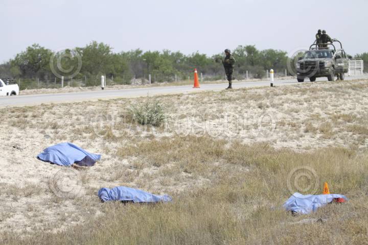 SABINAS HIDALGO, NUEVO LEÒN, 27ABRIL2013.- Personal del servicio forense retira los cuerpos de diez miembros de la banda La Reyna de Monterrey murieron después de un accidente de tráfico en el kilómetro 107 de la carretera Monterrey-Laredo en el municipio de Sabinas Hidalgo, la unidad en que viajaban se impacto contra un trailer Nuevo León. FOTO: GABRIELA PÉREZ MONTIEL / CUARTOSCURO.COM