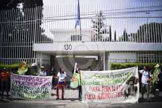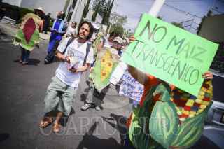 MÉXICO, D.F., 30ABRIL2013.- Integrantes de diferentes organizaciones sociales, de jóvenes, campesinos y ambientalistas, se manifestaron en la representación de la Organización de las Naciones Unidas para la Alimentación y la Agricultura (FAO), para rechazar las solicitudes de Monsanto y otras empresas transacionales de liberar maíz transgénico en estados del norte del país. Los jóvenes también manifestaron su preocupación por la participación de la FAO en el programa gubernamental "Cruzada Nacional contra el Hambre", campaña política, asistencialista y clientelar, con la participación de grandes transnacionales de la industria agroalimentaria como Nestlé, Pepsico y Walmart, quienes son los verdaderos responsables del hambre en el mundo, comentaron las personas convocadas. FOTO: ADOLFO VALTIERRA /CUARTOSCURO.COM