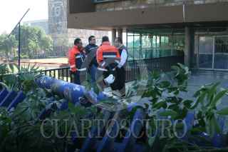 MÉXICO, D.F., 01MAYO2013.- Elementos de Protección Civil y Auxilio UNAM, resguardan la Torre de Rectoría de la UNAM, después de que los jóvenes que tenían tomado el edificio abandonaron el inmueble. Los activistas emitieron un comunicado donde aceptan el diálogo, que se llevará a cabo el próximo 09 de Mayo. FOTO: FRANCISCO RODRÍGUEZ /CUARTOSCURO.COM