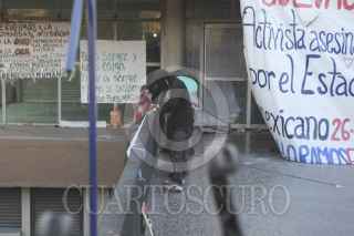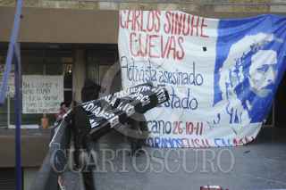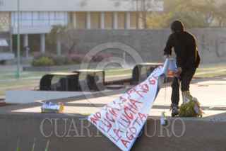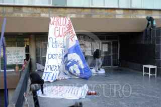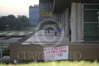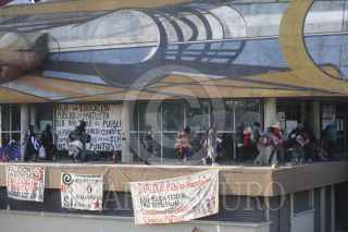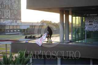 MÉXICO D.F. 01 MAYO 2013. Estudiantes de CCH que mantenían tomada la torre de rectoría de la UNAM desde hace 12 dias, se retiraron esta mañana dejando estas instalaciones en muy mal estado. FOTO: LUIS CARBAYO /CUARTOSCURO.COM