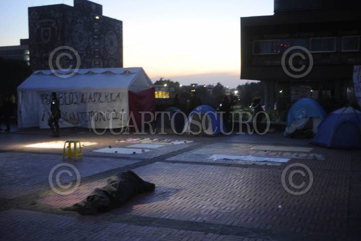 MÉXICO D.F. 01 MAYO 2013. Estudiantes de CCH que mantenían tomada la torre de rectoría de la UNAM desde hace 12 dias, se retiraron esta mañana dejando estas instalaciones en muy mal estado. FOTO: LUIS CARBAYO /CUARTOSCURO.COM