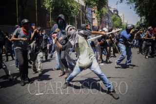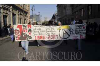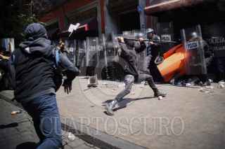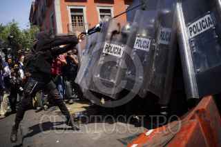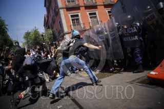 MÉXICO, D.F., 01MAYO2013.- Con la presencia de granaderos apostados sobre Reforma, avenida Juárez, Hidalgo, Cinco de Mayo, y Eje Central se desarrollo la marcha conmemorativa del Día del Trabajo en la participaron organizaciones sociales opositoras al gobierno federal y local. FOTO: PEDRO ANZA /CUARTOSCURO.COM