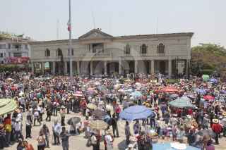 CHILPANCINGO, GUERRERO, 01MAYO2013.- Maestros de la Coordinadora Estatal de Trabajadores de la Educación de Guerrero e integrantes del Movimiento Popular de Guerrero, marcharon por las calles de Chilpancingo, en repudio a la nueva reforma de la ley educativa, al término de la movilización los inconformes dañaron automóviles del gobierno de estatal y dependencias federales como oficinas de la SEP, SCT, Policía Federal y Casa Guerrero. FOTO: SAÚL LÓPEZ /CUARTOSCURO.COM