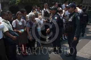 MÉXICO, D.F., 02MAYO2013.- Elementos de la Policia Federal invitan a curiosos a subirse a la banqueta, durante la visita de Barack Obama, presidente de Los Estados Unidos de Norteamérica en Palacio Nacional. FOTO: JUAN PABLO ZAMORA/CUARTOSCURO.COM