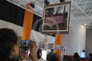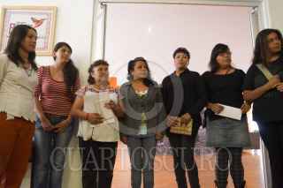 MÉXICO, D.F., 03MAYO2013.- Después de 7 años de los operativos en San Salvador Atenco y de los delitos sexuales cometidos por agentes de la policía de todos los ordenes, 11 mujeres sobrevivientes a estos atroces hechos se presentaron en el Centro de Derechos Humanos Miguel Agustín Pro Juárez A.C. Así mismo,se inauguró la exposición "Una foto por las mujeres de Atenco",en donde se presentó una obra que consistía en un collage de 400 fotografías que expresa la solidaridad y demanda justicia y alto a la impunidad. FOTO:ALEJANDRO NEYRA /CUARTOSCURO.COM