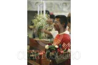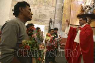 CUERNAVACA, MORELOS, 03MAYO2013.- Al medio día en la catedral de Cuernavaca se efectuó la ceremonia de la bendición de la santa Cruz. Hoy también se festeja a los albañiles quienes colocan la cruz recién bendecida en la obra en la cual laboran a manera de protección y agradecimiento por tener trabajo. FOTO: ALMA LAFAYET / CUARTOSCURO.COM