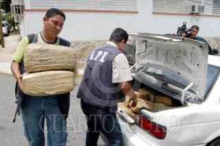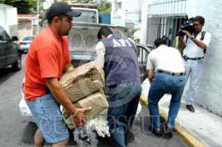 ACAPULCO GRO. 26AGOSTO2005.- Elementos del AFI en un operativo decomisarón 120 Kilos de Mariguana encontrados en la cajuela de un auto tsuru color blanco,en la Quebrada, de Acapulco. FOTO: Eric Miralrío /CUARTOSCURO.COM