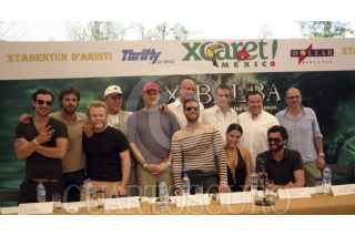 XCARET, QUINTANA ROO, 04MAYO2013.- Los actores Carla Ortiz, Markc Tacher, Juan Pablo Castañeda, Bernardo Peña junto con el director Joaquín Rodríguez y el productor Carlos Calderón ofrecieron una conferencia de prensa para dar detalles de la película Xibalba, la cual es un largometraje con las características propias de las películas de la industria de Hollywood y cuenta con un reparto de gran renombre, predominantemente Mexicano, soportado por actores Latinos y de Norte América. Los diálogos de la película mezclan el español e ingles, creando así una película apropiada para los mercados internacionales. FOTO: CSPHOTO /CUARTOSCURO.COM