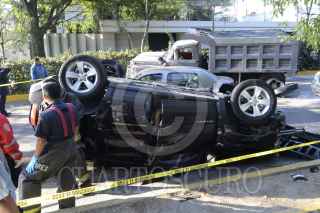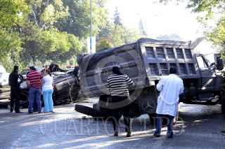 MÉXICO D.F. 05 MAYO 2013. Un hombre de aproximadamente 45 años, pierde la vida al impactar su camioneta Jeep Patriot contra un camión en el cruce de Av, Conscripto y 22 de Diciembre colonia Lomas Hipódromo. Una persona más resulto lesionada. FOTO: LUIS CARBAYO /CUARTOSCURO.COM