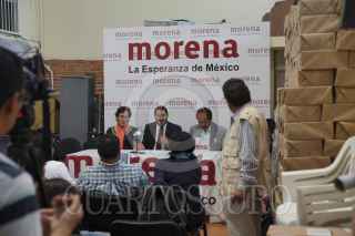 MÉXICO, D.F.,06MAYO2013 .- En las instalaciones de Morena (Movimiento de Liberación Nacional) Martín Batres, presidente de morena, impartió una conferencia en donde informó que el Tribunal Electoral no puede intervenir en la vida interna de Morena, ya que aún no es un partido político. Esto a partir de una queja de un militante de esta asociación que presentó la demanda ante el Tribunal por las fechas de realización de las asambleas municipales de Colima. FOTO: ALEJANDRO NEYRA /CUARTOSCURO.COM