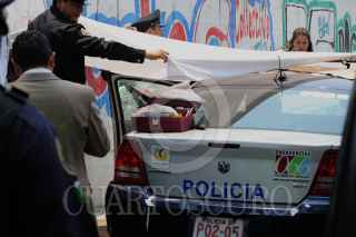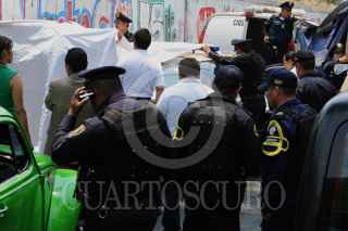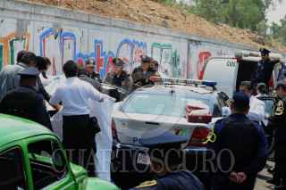 MÈXICO D.F. 06MAYO2013. Un elemento de la policía capitalina, decidiò quitarse la vida dándose un disparo en la cabeza a bordo de su patrulla P-02-05 del sector Ticoman, luego de estacionarse sobre Perifèrico casi esquina con Acueducto de Guadalupe colonia del mismo nombre. Se desconocen las causas que lo orillaron a tomar esta decisión. Peritos de este sector y elementos periciales de la Gustavo A. Madero acudieron al lugar en donde impidieron a toda costa la labor informativa de los reporteros. FOTO: LUIS CARBAYO /CUARTOSCURO.COM