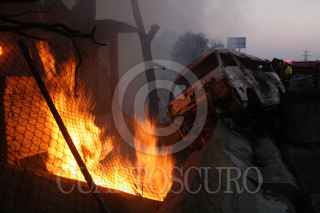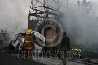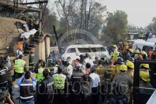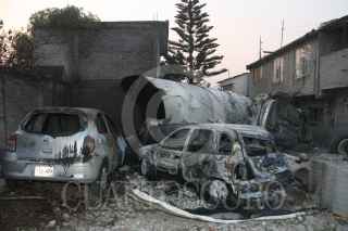 ECATEPEC, EDOMEX, 07MAYO2013.- Imágenes desoladoras fueron las que dejo la explosión de una pipa de 46,000 litros que transportaba un tráiler de doble remolque y que volcó sobre el kilómetro 16 de la autopista México-Pachuca en la colonia Xaloxtoc, dejando en llamas casas, autos y camiones que circulaban por el lugar. El ejercito Mexicano y el gobierno Federal aplicaron el plan DN-III por la dimensión de la tragedia. FOTO: LUIS CARBAYO /CUARTOSCURO.COM