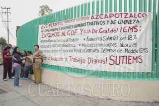 MÉXICO, D.F., 07MAYO2013.- En el Instituto de Educación Media Superior plantel Mlechor Ocampo, miembros del Sindicato de la Unión de los Trabajadores (SUTIEMS) iniciaron una huelga desde las 6 de la mañana del día de hoy. Trabajadores, profesores, docentes, administrativos ,entre otros miembros del sindicato, exigen un aumento del 15% en su salarios así como mejores condiciones laborales, entre otras demandas como condición para poner fin a la huelga. FOTO: ALEJANDRO NEYRA / CUARTOSCURO.COM