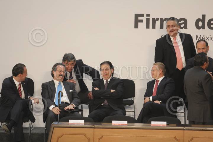 MÉXICO, D.F., 07MAYO2013.- Manuel Mondragón y Kalb comisionado nacional de seguridad, al termino de la firma de ademdum donde acordaron los 11 puntos al Pacto por México que garantizarán transparencia, igualdad, legalidad y respeto en los comicios del 7 de julio. FOTO: SAÚL LÓPEZ /CUARTOSCURO.COM