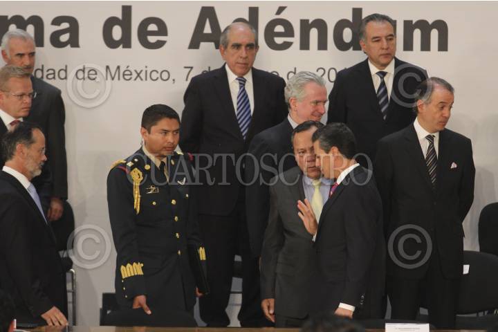 MÉXICO, D.F., 07MAYO2013.- Manuel Mondragón y Kalb comisionado nacional de seguridad, al termino de la firma de ademdum donde acordaron los 11 puntos al Pacto por México que garantizarán transparencia, igualdad, legalidad y respeto en los comicios del 7 de julio. FOTO: SAÚL LÓPEZ /CUARTOSCURO.COM