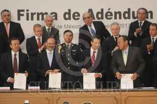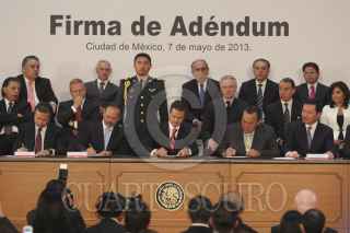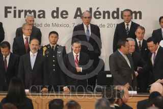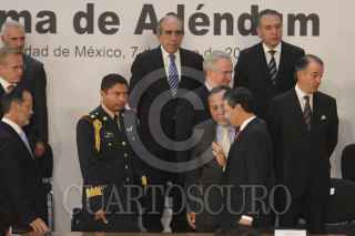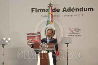 MÉXICO, D.F., 07MAYO2013.- Manuel Mondragón y Kalb comisionado nacional de seguridad, al termino de la firma de ademdum donde acordaron los 11 puntos al Pacto por México que garantizarán transparencia, igualdad, legalidad y respeto en los comicios del 7 de julio. FOTO: SAÚL LÓPEZ /CUARTOSCURO.COM