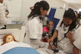 OAXACA, OAXACA, 07MAYO2013.- Estudiantes de los Centros de Enseñanza Ocupacional, provenientes de todo el estado, realizaron una exposición en la Alameda de León, en la capital de Oaxaca, donde mostraron sus habilidades médicas, culinarias, corte y confección así como de belleza. Los centros de enseñanza brindan atención no solo a jovencitas, sino también adultos que buscan un oficio al cual dedicarse. FOTO: ARTURO PÉREZ ALFONSO/CUARTOSCURO.COM
