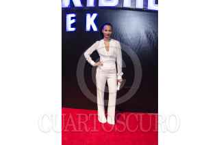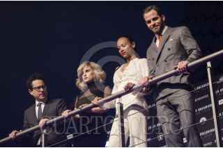 MÉXICO, D.F., 07MAYO2013.- J.J. Abrams, Alice Eve, Zoe Saldana y Chris Pine, director y actores de la cinta Star Trek: En la Oscuridad, durante su paso por la alfombra roja del estreno de esta película en México. FOTO: MISAEL VALTIERRA / CUARTOSCURO.COM