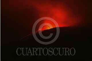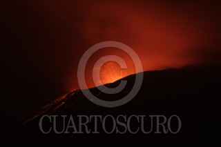 PASO DE CORTÉS, PUEBLA, 08MAYO2013.- El volcán Popocatépetl arrojó material incandescente durante mas de tres horas la madrugada de ayer, sin representar mayor peligro mas que la caída intensa de ceniza en la capital poblana. Autoridades confirman que a pesar del evento la alerta continúa en amarillo fase 2. FOTO: HILDA RÍOS /CUARTOSCURO.COM