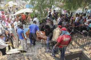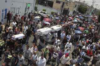 ECATEPEC ESTADO DE MÉXICO., 08MAYO2013.- Oficiaron una misa de cuerpo presente en la iglesia de San Pedro, a las victimas fallecidas en la tragedia el día de ayer, ocasionada por la pipa de gas que exploto en Xaloxtoc. FOTO: SAÚL LÓPEZ /CUARTOSCURO.COM