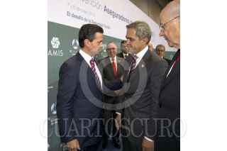 MÉXICO, D.F., 08MAYO2013.- El Presidente Enrique Peña Nieto clausuró la 23 Convención de Aseguradores de México, en un acto en el que afirmó que los seguros son esenciales para el desarrollo social y económico de un país moderno, y contribuyen a proteger el bienestar y el patrimonio de las familias. En la imagen el mandatario priista conversa con el Jefe de Gobierno Miguel Ángel Mancera. FOTO: PRESIDENCIA /CUARTOSCURO.COM