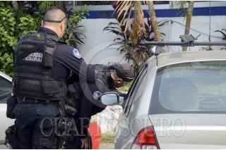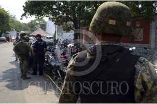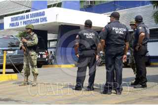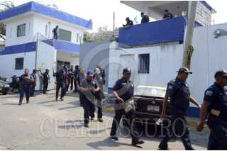 ACAPULCO, GUERRERO, 08MAYO2013.- Jesús Cortés Jiménez, Secretario de Seguridad Pública y Protección Civil, ordeno el arribo de policías federales y militares a la Secretaria de Seguridad Publica y Protección Civil para una revisión sorpresiva a elementos de la Policía Vial luego de un reporte sobre irregularidades en contra de dos elementos de la Policía Vial. Durante la revisión se encontraron credenciales de dos civiles que no son policías. El secretario de seguridad aclaró que siete comandantes del sector, no se les encontró el arma de cargo y que según ellos “olvidaron sus armas en su domicilio”. A unos policías se les retiraron las armas ya que las usaban para llevársela a su casa. Algunos de los elementos de la Policía Vial, entrevistados en las calles de este puerto, respondieron en torno a las declaraciones del Secretario de Seguridad Pública que: “el señor está actuando de mala manera ya que, a varios los está mandando a trabajar al área rural, y que, estando en ese lugar sí los atacaran y mataran el seguro de vida no se les es válido y que todo lo que está haciendo es fuera de la ley”. FOTO: BERNANDINO HERNÁNDEZ /CUARTOSCURO.COM